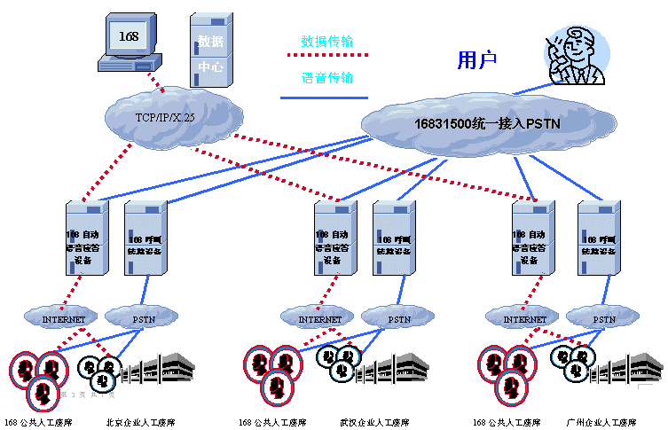 近期,從中國電信數(shù)據(jù)業(yè)務(wù)主管部門得知,中國電信168系統(tǒng)通過一期的聯(lián)網(wǎng)改造,已經(jīng)可以在全國一百多個(gè)城市提供同步的自動(dòng)語音服務(wù),其中十幾個(gè)省份開通本地人工座席的接入服務(wù)以及公共的人工座席出租服務(wù)。企業(yè)可以租用該平臺(tái)的特服接入號(hào)碼,將全國各地的服務(wù)分支機(jī)構(gòu)組建成大型的呼叫中心,為各地的用戶提供高效的自動(dòng)和人工服務(wù)。在所有開通城市消費(fèi)者均可以得到以市話標(biāo)準(zhǔn)的統(tǒng)一自動(dòng)語音服務(wù)支持,同時(shí),消費(fèi)者在自動(dòng)語音的提示下可以與當(dāng)?shù)鼗虍惖氐娜斯ぷ〉寐?lián)系。企業(yè)端的接入設(shè)備可以是標(biāo)準(zhǔn)的呼叫中心人工座席,也可以是集團(tuán)電話或公司總機(jī),甚至于可以是一部普通電話,而且企業(yè)整個(gè)服務(wù)過程中不用承擔(dān)被叫通信費(fèi)用。