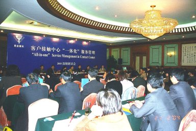 2003年2月21日,五洲賓館長江廳高朋滿座,由香港資深Call Center服務(wù)商易寶通訊服務(wù)有限公司主辦的電信行業(yè)客戶接觸中心"一體化"服務(wù)管理研討會在這里隆重舉行。全國各地的電信、移動、聯(lián)通、網(wǎng)通等運(yùn)營商及易寶的合作伙伴共四十多家單位的Call