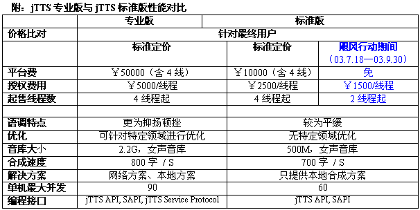 1)為"jTTS標準版"提供進一步的優(yōu)惠價格。(詳情請聯(lián)系捷通市場營銷中心)