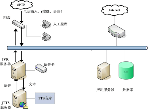jTTS在12320中的應(yīng)用主要表現(xiàn)在查詢結(jié)果的語音返回和服務(wù)信息的發(fā)布上。只要將捷通TTS服務(wù)器集成到現(xiàn)有的IVR系統(tǒng)中,并且在IVR服務(wù)端設(shè)置好預(yù)讀出的文本即可。眾所周知,“12320”公益服務(wù)熱線需要提供海量關(guān)于我國公共衛(wèi)生相關(guān)法律法規(guī)、各種重大疾病的預(yù)防保健知識的宣傳和咨詢服務(wù),如果采用傳統(tǒng)人工座席或請專業(yè)播音人員錄音,費時費力,且投入較大。用語音合成技術(shù)(TTS)來解決,用戶提交查詢請求,IVR服務(wù)器收到請求后會向其他應(yīng)用服務(wù)器提交,當(dāng)IVR得到查詢結(jié)果后,將文本形式的查詢結(jié)果交給jTTS服務(wù)器,jTTS服務(wù)器返回查詢結(jié)果的語音形式,最終語音在坐席上播放,用戶就可以聽到所要查詢的信息(如圖)。這樣市民可以24小時撥打熱線,查詢各方面的內(nèi)容,不受時間限制,既節(jié)約政府開支,為民辦實事,而且在最大程度上提高了辦事效率,樹立了良好的政府形象。