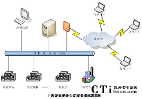 上海證券一直以來都重視IT在企業(yè)發(fā)展中的重要作用,公司成立了信息技術(shù)總部專門負(fù)責(zé)公司信息化平臺的建設(shè)與維護(hù)。2009年4月上海證券視頻會(huì)議項(xiàng)目進(jìn)入最終選型階段,經(jīng)過多次測試和評比,最終選用音視頻效果好,運(yùn)行穩(wěn)定,成熟度高的北京威速科技有限公司視頻會(huì)議產(chǎn)品V2 Conference視頻會(huì)議系統(tǒng)。2009年6月完成了項(xiàng)目實(shí)施部署。