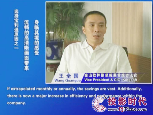 寶利通公司中國區(qū)總經(jīng)理李鋼先生說:“此次寶利通全球領(lǐng)先的高清視頻會(huì)議系統(tǒng)得到金山軟件的認(rèn)可,為我們的極致高清方案帶來又一個(gè)經(jīng)典案例。作為金山軟件企業(yè)信息化進(jìn)程的重要一環(huán),高清方案成為先期實(shí)施的項(xiàng)目之一。這充分反映了本土高科技企業(yè)對(duì)構(gòu)建方便、快捷、高質(zhì)量統(tǒng)一協(xié)作平臺(tái)所給予的足夠重視,我們深表欽佩。真誠期待通過我們的優(yōu)質(zhì)服務(wù)和成熟的解決方案,讓更多客戶體會(huì)到協(xié)作通信所帶來的成本效益優(yōu)勢(shì)和工作便利!