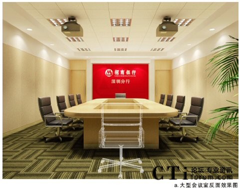 為了保證高清視頻會議的效果,招商銀行專門聘請專業(yè)設計公司對全行的會議室進行專業(yè)顧問設計,統(tǒng)一全行會議室的風格,使到極致高清會議效果達到極限。