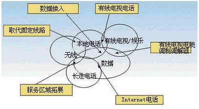 數(shù)據(jù)服務(wù)同本地電話服務(wù)的融合,是不來最重要的融合趨勢之一,其主要體現(xiàn)在通過本地電話可以解決數(shù)據(jù)業(yè)務(wù)的接入問題,可以提供窄帶或?qū)拵У慕尤肽芰。同時,可以為Internet服務(wù),如電子郵件服務(wù)同電話話音服務(wù)結(jié)合起來創(chuàng)造條件。一種未來的發(fā)展方向就是利用電話來接收電子郵件同時可以用電子郵件的方式閱讀語言信箱中的留言!奥犽娮余]件,看語言信箱”是對這種融合服務(wù)的最好描述。而數(shù)據(jù)業(yè)務(wù)同長途電話業(yè)務(wù)的融合集中于通過VoIP技術(shù)提供長途電話服務(wù),競爭收入最大的電信市場。數(shù)據(jù)服務(wù)同有線電視娛樂服務(wù)的融合主要體現(xiàn)在以Cable Modem做為數(shù)據(jù)接入手段和視頻點播這樣的娛樂服務(wù)。通過Cable Modem,有線電視網(wǎng)也可以提供本地電話和長途電話接入業(yè)務(wù),象AT&T和TCI 及MediaOne 正在進(jìn)行的電話業(yè)務(wù)實驗。而寬帶的數(shù)據(jù)接入則為數(shù)據(jù)服務(wù)的寬帶化提供了條件。