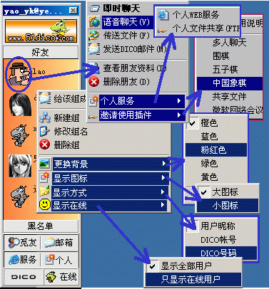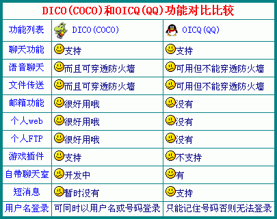 6、個人FTP服務功能……等等(下圖1是DICO與時下QQ的功能對比表)。