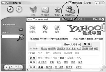 MSN瀏覽器除了靚麗的界面,更集郵件和即時通訊功能為一身,注意圖中圈住的地方,就是與即時通訊軟件MSN的有機結(jié)合