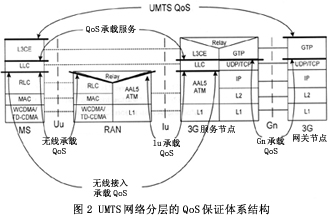 1. UMTS分層體系結(jié)構(gòu)和QoS控制的層間映射/分段保證機(jī)制