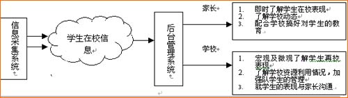 通過這套系統(tǒng),學(xué)校和家長(zhǎng)能夠更好的了解學(xué)生在校的表現(xiàn),從而更好地管理學(xué)生;學(xué)校能夠大大加強(qiáng)管理的水平和效率,從而更動(dòng)態(tài)地利用和管理在校的資源;