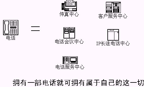 該方法的實施,可以讓每一個電話和強大的CTI系統(tǒng)聯(lián)系,一部電話將變成語音系統(tǒng)、傳真系統(tǒng)、電話會議系統(tǒng)、……。擁有這一切用戶只需要支付呼叫轉(zhuǎn)移的費用。可以設(shè)想,以后開辦公司,只要申請電話,擁有ADSL上網(wǎng)的電腦,用戶在辦公室、在家,打開電腦,單擊進入自己的語音系統(tǒng)、會議系統(tǒng),宣傳公司,召開會議,發(fā)送傳真。公司擁有、使用自己的、電信級的CTI系統(tǒng);所有CTI應用系統(tǒng)的開發(fā),語音部分完全由電話接入服務商提供,……。