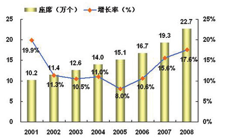 計(jì)世資訊(CCW Research)預(yù)測:從2006年開始,中國呼叫中心市場將進(jìn)入第二個(gè)高速發(fā)展期。這是因?yàn)樵诖笮推髽I(yè)用戶呼叫中心應(yīng)用的帶動下,呼叫中心的中小型企業(yè)市場逐漸成熟,需求將快速增長,從而帶動中國呼叫中心市場增速從2005年的8%快速攀升到2008年的17.6%。特別是由于2008年北京奧運(yùn)會和2010年上海世界博覽會的召開,從經(jīng)濟(jì)、旅游、文化交流等方面為全社會帶來的巨大的拉動力量。