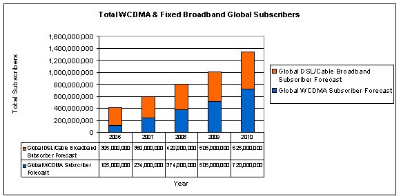 圖1:全球WCDMA和固定寬帶用戶預(yù)測(cè)