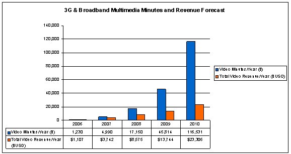 圖2:總3G和寬帶多媒體詳情與收入預(yù)測(cè)