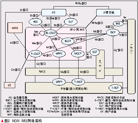 圖2所示為NGN IMS的網絡架構(會話控制、承載),下面介紹一下該網絡架構中主要邏輯實體。