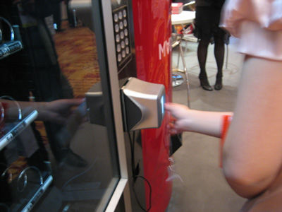 層出不窮的新創(chuàng)意在展會上吸引著參觀者的目光。在意銳的二維碼自動售貨機旁(下圖所示),有人手持一張印制二維碼的卡片,對準自動售貨機的二維碼識讀端口,識讀后即獲得一聽百事可樂。手持相同卡片的圍觀人群發(fā)出驚嘆的贊許,原來這是意銳與億動傳媒聯(lián)手為參加展會的每位人員提供的免費禮品,一張小小的卡片上,一個不足卡片十分之一大小的黑白色小方塊,帶給參會者如此大的驚喜。意銳和億動傳媒以這種娛樂趣味的方式向大家展示了二維碼的時尚應用,實際上二維碼技術在廣告領域也能發(fā)揮其意想不到的優(yōu)勢。作為國際、國內(nèi)雙重標準的二維碼——QR碼,廣泛應用于海關、稅務、工商、保險、運輸、防偽、傳媒等多行業(yè)多領域。二維碼作為記錄信息的新一代條碼技術開辟了提供多樣而豐富信息的捷徑,手機網(wǎng)絡作為新興于廣告業(yè)的傳播媒介,如同一把雙刃劍,打破所有媒體界限,把傳統(tǒng)媒體和新媒體進行整合的新的營銷平臺。二維碼成為信息載體功能的媒介和商業(yè)終端,二維碼技術在廣告業(yè)的應用涵蓋了傳統(tǒng)媒體與新媒體的全部特性,它在實現(xiàn)自身基本功能屬性的過程中,由于能與最終用戶直接接觸,因而能夠將特定的信息進行最大響度的有效傳播,進而達到超過普通媒體傳播效果的狀態(tài),所謂精準營銷。