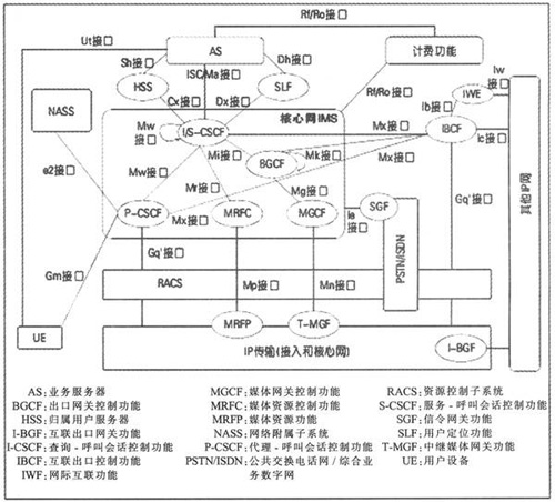 圖1是IMS的整體網(wǎng)絡架構(gòu)示意圖,其主要的邏輯實體有: