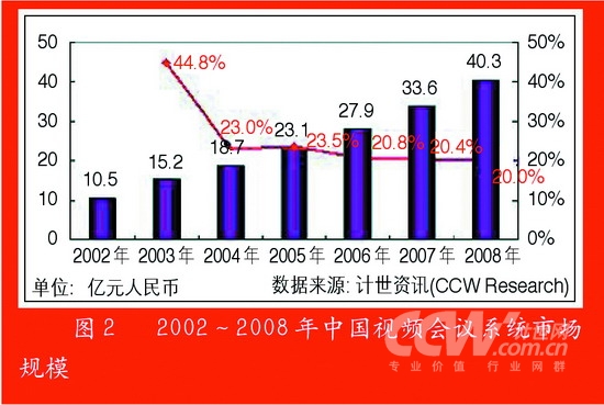從市場(chǎng)結(jié)構(gòu)上看,混網(wǎng)及Internet軟件視頻會(huì)議系統(tǒng)市場(chǎng)已經(jīng)形成了對(duì)專線市場(chǎng)的主導(dǎo)地位的挑戰(zhàn),僅2004年,專線市場(chǎng)就比2003年下降了19.5個(gè)百分點(diǎn),到2005年混網(wǎng)及企業(yè)公網(wǎng)市場(chǎng)份額達(dá)到77.5%,而在2006年,混網(wǎng)及Internet視頻會(huì)議系統(tǒng)已經(jīng)達(dá)到80.2%的市場(chǎng)占有率,基本占據(jù)了市場(chǎng)的主導(dǎo)地位。