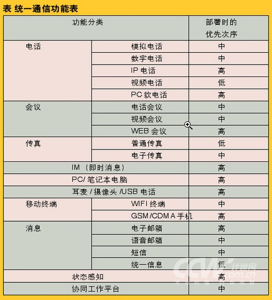 ”、“智能通信”和“統(tǒng)一溝通”等,盡管每個(gè)廠商所給出的定義均有些細(xì)微的差別,但總體來(lái)看,其核心內(nèi)容就是指將現(xiàn)在各種溝通方式進(jìn)行融合,目的是讓人們無(wú)論是在任何時(shí)間、任何地點(diǎn),都可以通過(guò)任何設(shè)備、任何網(wǎng)絡(luò)實(shí)現(xiàn)自由的溝通。目前常用的溝通方式有電話、傳真、短信、email、Web會(huì)議、視頻會(huì)議、語(yǔ)音信箱、IM軟件、協(xié)同工作平臺(tái)等等,這些溝通方式覆蓋了電信、IT和互聯(lián)網(wǎng)三大領(lǐng)域,因此統(tǒng)一通信是這三大領(lǐng)域逐步發(fā)展、自然融合的結(jié)果。