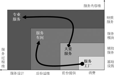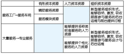 本質(zhì)上講,電信服務(wù)產(chǎn)品的四類(lèi)服務(wù)都是在此二維機(jī)理的作用下生成的,服務(wù)的內(nèi)容映射著企業(yè)的有形資本資源和人力資本資源,服務(wù)的過(guò)程映射著企業(yè)的組織資本資源,從一種服務(wù)向另一種服務(wù)躍遷,不僅僅是服務(wù)過(guò)程和服務(wù)內(nèi)容的重新整合,更重要的是需要彌補(bǔ)相應(yīng)的資源,才能達(dá)到服務(wù)生成的結(jié)果,否則,躍遷就不會(huì)成功。