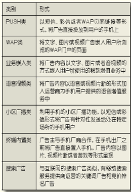 手機(jī)廣告作為新的廣告媒體,其發(fā)展前景被不少業(yè)內(nèi)專家所看好。手機(jī)廣告的發(fā)展主要經(jīng)歷了三個主要階段:以廣告PUSH為代表的信息單向傳播階段;以廣告定制和信息互動為主的商業(yè)信息溝通階段;以電子商務(wù)為載體、以交易實(shí)現(xiàn)為最終目標(biāo)的移動營銷服務(wù)階段。在發(fā)展過程中,還呈現(xiàn)以下趨勢: