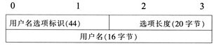 本方案采用DHCPv6協(xié)議作為接入認證方式,在DHCPv6 Request消息中添加用戶名和密碼選項來傳送認證信息。用戶名選項格式定義如下: