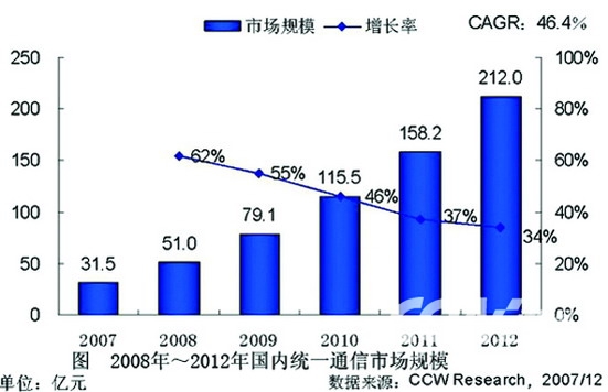 從幾年前的概念引入、推廣,到2007年國內(nèi)外主流廠商紛紛宣布推出產(chǎn)品及解決方案、輪番上陣掀起市場大戰(zhàn),統(tǒng)一通信如今已經(jīng)成為整個ICT業(yè)界最熱門、最受關(guān)注的話題。吸引眼球的工作已經(jīng)做足,概念也已經(jīng)得到普及,成熟的產(chǎn)品及解決方案紛紛上市,下一步,統(tǒng)一通信面臨的課題似乎就是如何走進(jìn)千千萬萬的企業(yè)、在實際中得以應(yīng)用了。