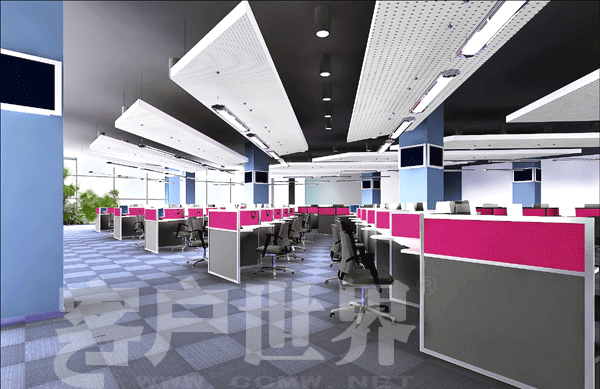 呼叫中心是人員高度集中的場所,其布局又主要是以開敞式為主。因此吸聲是呼叫中心“降噪”最為重要的手段。我們可以針對呼叫中心的墻面、頂面進行吸聲處理,對于墻面頂面受原有建筑限制不能按標準使用吸聲材料的,則可使用空間吸音體來達到需要的效果。對于一些無法再進行空間吸聲改造的呼叫中心,可以大面積的增加綠植來起到吸聲的作用;這些手段本身的造價并不比傳統(tǒng)的裝飾裝修手段貴,只是將部分的吸聲材料替代傳統(tǒng)的裝修材料,從而使建筑空間本身具備吸聲效果。一定會對呼叫中心未來的使用帶來方便。