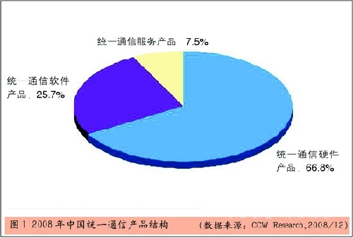 從產(chǎn)品結(jié)構(gòu)角度分析,雖然受硬件設(shè)備價(jià)格因素的影響,統(tǒng)一通信設(shè)備市場(chǎng)仍然是通信市場(chǎng)中最大份額的一部分,市場(chǎng)份額占到66.8%。而且隨著企業(yè)用戶對(duì)于統(tǒng)一通信理解能力的加深,統(tǒng)一通信軟件產(chǎn)品與統(tǒng)一通信服務(wù)越來越受到更多企業(yè)的認(rèn)同。與2007年相比,統(tǒng)一通信軟件和服務(wù)產(chǎn)品市場(chǎng)份額有一定比例的增加。2008年,統(tǒng)一通信軟件產(chǎn)品達(dá)到市場(chǎng)份額的25.7%,特別是統(tǒng)一通信服務(wù)產(chǎn)品,增長迅速,市場(chǎng)份額超過7.5%。