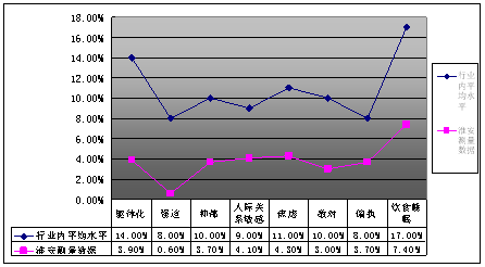 眾所周知,呼叫中心行業(yè)的競爭異常激烈,員工的工作任務(wù)及業(yè)務(wù)指標(biāo)都異常繁重,同時(shí),由于行業(yè)特殊性,員工的心理壓力大,滿意度低,離職率高更是一種普遍現(xiàn)象。然而,淮安中心反映員工狀態(tài)的一組數(shù)據(jù),卻讓人感到好奇:北京本源慧通資訊管理公司提供的專業(yè)心理測評顯示,淮安中心員工壓力水平遠(yuǎn)遠(yuǎn)好于行業(yè)內(nèi)平均水平(具體指標(biāo)見圖1),同時(shí)2007年全年中心流失率8.5% ,保持了行業(yè)中領(lǐng)先水平。(行業(yè)流失率在30%左右)
