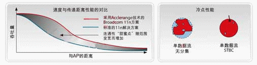 為了向聯(lián)網(wǎng)家庭提供強(qiáng)大的無(wú)線骨干網(wǎng),Broadcom利用Acclerange技術(shù)對(duì)其新的802.11n路由器平臺(tái)作了全面優(yōu)化,其軟硬件增強(qiáng)性能確保了家庭中任一角落的更健壯的無(wú)線覆蓋。Accelerange軟件架構(gòu)還支持時(shí)空分組編碼(STBC)技術(shù),采用了獨(dú)特的2×2天線結(jié)構(gòu),從而能以盡可能低的成本提供更好的性能。它的非線性均衡器只需要兩個(gè),而65nm工藝的集成更是有助于進(jìn)一步降低成本。另外,基于Accelerange的解決方案針對(duì)視頻分發(fā)和其他多媒體應(yīng)用作了優(yōu)化,其內(nèi)置算法可以檢測(cè)多媒體數(shù)據(jù)流,并通過(guò)動(dòng)態(tài)調(diào)整來(lái)實(shí)現(xiàn)最優(yōu)性能。經(jīng)認(rèn)證的動(dòng)態(tài)頻率選擇(DFS)技術(shù)還可以在5GHz頻段內(nèi)增加15個(gè)信道。