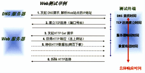 在用戶(hù)對(duì)無(wú)線(xiàn)數(shù)據(jù)業(yè)務(wù)的訪(fǎng)問(wèn)過(guò)程中,通常會(huì)包含多個(gè)階段(業(yè)務(wù)處理過(guò)程)。如當(dāng)用戶(hù)在使用手機(jī)要瀏覽網(wǎng)頁(yè)的時(shí)候,先輸入網(wǎng)頁(yè)的地址,然后按手機(jī)上的“訪(fǎng)問(wèn)”按鈕,一段時(shí)間后手機(jī)的屏幕上就會(huì)顯示出要瀏覽的網(wǎng)頁(yè)頁(yè)面。看似簡(jiǎn)單的過(guò)程,其實(shí)這里面包含了以下幾個(gè)步驟:DNS查找時(shí)間、TCP連接時(shí)間、服務(wù)器響應(yīng)時(shí)間和數(shù)據(jù)下載時(shí)間。在這中間,只要任何一步出了問(wèn)題,如DNS解析時(shí)間過(guò)長(zhǎng)、TCP連接建立時(shí)間過(guò)長(zhǎng)、應(yīng)用服務(wù)器負(fù)載過(guò)重、網(wǎng)絡(luò)可用信道資源少而造成數(shù)據(jù)下載慢,都可能會(huì)造成頁(yè)面下載失敗。因此,為了能準(zhǔn)確地定位造成用戶(hù)對(duì)Web服務(wù)質(zhì)量感知度差的原因,我們就需要得到各階段的性能參數(shù),這樣才能快速地進(jìn)行相關(guān)服務(wù)器和網(wǎng)絡(luò)的故障查找并解決問(wèn)題。