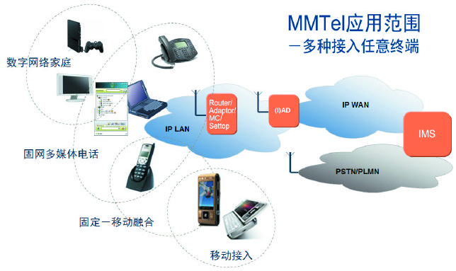 對于消費(fèi)者而言,MMTel意味著自由度更高的溝通方式:無論是固話、手機(jī)還是PC,都可以同時(shí)進(jìn)行語音、視頻通話,文字、圖片、音像的傳送或者共享等多項(xiàng)業(yè)務(wù),而且能夠在固定終端和移動(dòng)終端之間自由切換。對于運(yùn)營商來說,MMTel則意味著從語音通話和短消息到多媒體電話業(yè)務(wù)的一次全面升級。MMTel標(biāo)準(zhǔn)中定義了多種多樣的多媒體業(yè)務(wù)和補(bǔ)充業(yè)務(wù),一方面豐富了原有的電路交換業(yè)務(wù),為運(yùn)營商帶來新的利潤源泉,另一方面又融合了互聯(lián)網(wǎng)多媒體業(yè)務(wù)的諸多優(yōu)勢,可以幫助全業(yè)務(wù)運(yùn)營商有效地吸引終端用戶。