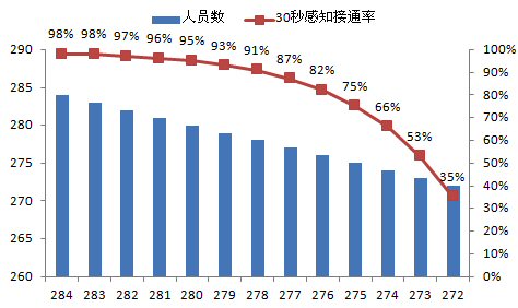 呼叫中心指標(biāo)體系中最為基礎(chǔ)最為關(guān)鍵的就是接通率指標(biāo)了,下面,本文重點(diǎn)將呼叫中心部分與接通率相關(guān)的運(yùn)營(yíng)數(shù)據(jù)轉(zhuǎn)化成圖表,用erlang-C(國(guó)際標(biāo)準(zhǔn)的呼叫中心管理軟件)的計(jì)算數(shù)據(jù)表示管理和資源投入對(duì)于呼叫中心生產(chǎn)的巨大影響。