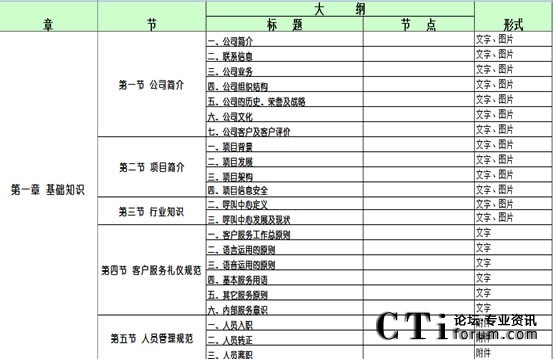 呼叫中心的業(yè)務(wù)手冊作為呼叫中心知識管理中的重要組成部分,在承載、存儲、傳遞、更新業(yè)務(wù)知識信息,以及知識信息的歸類整理方面起著至關(guān)重要的作用,是呼叫中心顯性知識管理的重要工具和組成部分,此部分內(nèi)容詳見拙作:http://www.guihuay.com/factory/outsourcing/www.arvatoservices.com.cn/arvatoservices09_0501.htm。