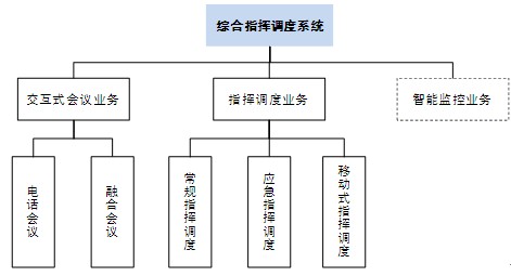基于融合通信平臺的綜合指揮調(diào)度系統(tǒng)可分為交互式會議業(yè)務、指揮調(diào)度業(yè)務和智能監(jiān)控業(yè)務,而交互式會議業(yè)務分為電話會議和在電話會議基礎(chǔ)上升級的融合會議產(chǎn)品兩種,指揮調(diào)度業(yè)務分常規(guī)指揮調(diào)度、應急指揮調(diào)度和移動式指揮調(diào)度三種。