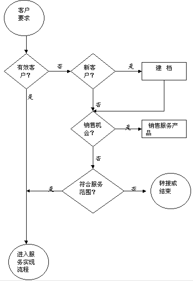----在呼叫中心中,面對客戶的流程主要有三大類:核實(shí)流程,服務(wù)實(shí)現(xiàn)流程和知識(shí)流程。我將三個(gè)典型的流程圖列出并希望能夠省略文字解釋的篇幅。根據(jù)業(yè)務(wù)類別的不同,圍繞著主要流程還可以有許多子流程。如在銷售型呼叫中心中服務(wù)實(shí)現(xiàn)流程中就可能會(huì)銷售線索派送跟蹤流程和立即銷售流程等。而在立即銷售流程中可能又會(huì)有付款收費(fèi)流程的等。