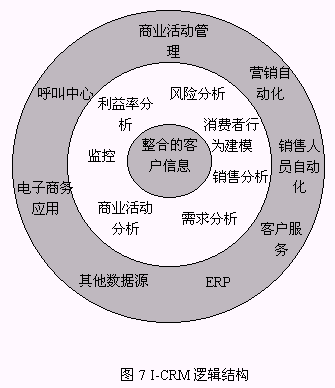 5) EIP(Enterprise Information Portal,企業(yè)信息門戶)提供了用戶獲取信息的統(tǒng)一界面(基于WEB)。通過這個界面,I-CRM將客戶知識分發(fā)在包括事務型系統(tǒng)在內(nèi)的所有企業(yè)應用,使I-CRM成為企業(yè)應用的核心并促進企業(yè)集成;