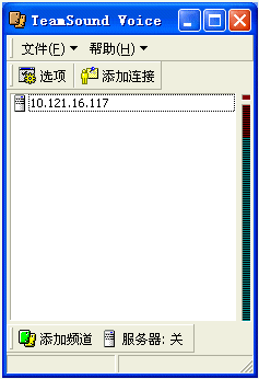 2.基本操作。開服務(wù)器,只需點(diǎn)擊一下“服務(wù)器:開”這個(gè)按鈕,你的機(jī)器就變成服務(wù)器了,很方便(注意要先設(shè)定默認(rèn)頻道)。加入你的戰(zhàn)友開了服務(wù),你要加入先點(diǎn)擊“添加連接”,在對(duì)話框中要輸入對(duì)方的IP和密碼,然后再“添加頻道,在局域網(wǎng)中,則直接“添加頻道”就ok了。
