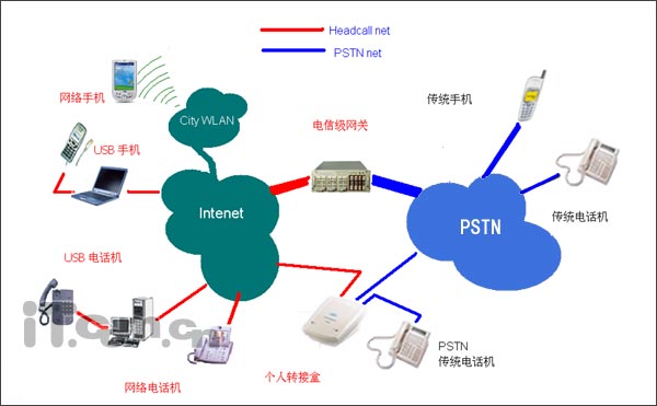 IP網(wǎng)絡(luò)電話和普通(PSTN)電話到底是怎么樣解決互通問題的呢?下面的我們?cè)敿?xì)的探討這個(gè)問題。我們都知道,互聯(lián)網(wǎng)與普通的電話網(wǎng)絡(luò)是不同的兩個(gè)網(wǎng)絡(luò),要是實(shí)現(xiàn)IP網(wǎng)絡(luò)電話和普通(PSTN)電話互通就必須使用一種設(shè)備連接這兩個(gè)網(wǎng)絡(luò)。如下圖所示: