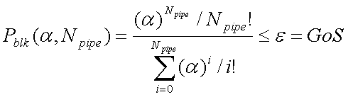 用 和 分別表示流量管道容量和每個呼叫所需帶寬,則流量管道可同時傳送的呼叫數(shù)目可表示為 。記 為呼叫阻塞的概率,則Erlang B公式可以表示為[6]: