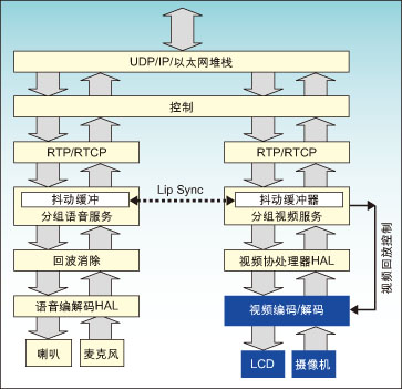 IP語音通話需要一些功能和處理的融合。此外,對(duì)于用戶接口和應(yīng)用層來說,這些處理包括通話控制、語音編解碼、回波消除和抖動(dòng)緩沖。IP可視通話又增加了一些額外的要求,主要包括視頻編/解碼,色彩顯示緩沖和管理以及語音/視頻(A/V)流同步。其結(jié)果是需要一個(gè)復(fù)雜的和協(xié)調(diào)的組合功能,包括大量的控制功能,還有原始數(shù)據(jù)處理以及復(fù)雜的功率管理方法。適合于某種處理應(yīng)用的最佳架構(gòu)未必就是另一種應(yīng)用的最佳,于是迫使設(shè)計(jì)師必須采取一些系統(tǒng)折衷。