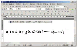 安裝成功后,你會(huì)從圖16中看到一個(gè)手寫圖標(biāo),接下來我們就可以使用手寫識別功能啦。首先,你必須在屏幕上選定書寫區(qū)域,可以是屏幕上類似于筆記本橫格紙的輸入板,也可以在屏幕上任意的位置書寫。我們可通過使用手寫輸入設(shè)備或移動(dòng)鼠標(biāo)墊上的鼠標(biāo)來形成文字,從而完成書寫,手寫文字將被自動(dòng)識別,并輸入到程序的插入點(diǎn)處。就像通常在紙張表面上一樣,你可以使用草書、印刷體或二者兼而有之地進(jìn)行書寫,書寫時(shí)不必每寫完一個(gè)字母后作停頓,可輸入整個(gè)單詞并在單詞之間留出空格。