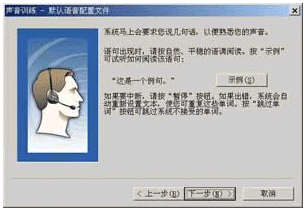 點(diǎn)擊"下一步"按鈕后,你會(huì)看到如圖9所示的對話框,這里主要是告訴你系統(tǒng)即將要求你說出幾句話以便熟悉你的聲音,點(diǎn)擊"示例"按鈕后可以試聽如何閱讀該語句。