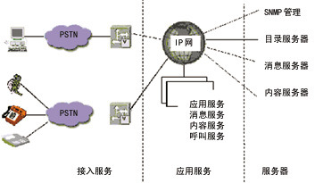 數(shù)據(jù)交換技術(shù)的發(fā)展使IP逐漸成為數(shù)字、語音等各種信息服務的網(wǎng)絡基礎標準。各種基于IP傳送話音、視頻的技術(shù)標準(如SGCP、VoIP等)也不斷提出并迅速統(tǒng)一。那么,基于IP的統(tǒng)一消息方案由兩部分組成:通用信息接收箱功能模塊和通用連接手段。通用信息接收箱功能模塊用于把所有形式的消息,如傳真、話音郵件、電子郵件等集成到一個IP網(wǎng)上的通用接收箱,用來提供給用戶一個公共平臺,來管理所有的消息。通用連接手段允許用戶通過電話網(wǎng)、DSL網(wǎng)、有線電視網(wǎng)和無線網(wǎng),使用電話、PC、電子郵件客戶設備、Web瀏覽器、無線手持設備和PDA訪問通用信息接收箱。