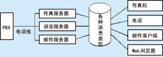 統(tǒng)一消息具有使用簡單和節(jié)省時間等顯著的優(yōu)點,而它給人們帶來的益處恰好就在這些看似平凡的地方。如果能夠把語音郵件、傳真、電子郵件等變成單一的“消息”,就可以大幅度減少用于傳送手段和方法等耗費的時間和精力,而人們就可以用這些時間和精力去改善消息本身的內(nèi)容和質(zhì)量。那么,它在技術(shù)上是如何實現(xiàn)的呢?