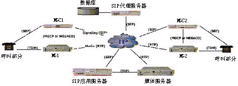 統(tǒng)一通信平臺(tái)使用會(huì)話初始化協(xié)議(Session Initiation Protocol)與VoIP網(wǎng)絡(luò)通信,如圖1所示。選擇SIP而不是其他協(xié)議(如H.323),是因?yàn)樗赩oIP領(lǐng)域中越來越多地被采用。這一點(diǎn)可以由Microsoft和Sun公司都宣稱支持SIP而不是H.323、MGCP或MEGACO協(xié)議而得到證明。