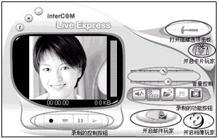 動態(tài)視頻EMAIL,用這個軟件可以采用發(fā)送電子郵件的方式,將您的音容笑貌傳送到親朋好友的郵箱中,讓遠方的她收到可“動”的你。我們還是以奧美嘉公司的CD370電腦相機為例向大家介紹這個功能。在CD370附帶的驅(qū)動光盤中就搭載了視頻EMAIL的制作軟件,其實它是Intercom的Live Express視頻應(yīng)用軟件,除了視頻EMAIL(郵件玩家)的功能外,它還具有“卡片玩家”及“相薄玩家”等功能,我們將在以后的文章中為大家逐一介紹。首先,打開Live Express的主程序“影音玩家”,可以見到程序界面上分布著大大小小不同的按鈕,是不是一時間找不到感覺了?不用著急,下面請跟著我的步驟來操作: