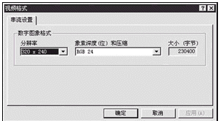 3.選擇視訊格式。點擊中間三個按鈕中的第一個,在彈出的窗口中,分辨率推薦選擇320 x 240。