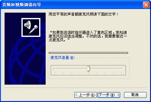 同樣,首先你應(yīng)該在MSN Messenger中調(diào)節(jié)你的音頻和視頻設(shè)備。選擇工具->音頻調(diào)節(jié)向?qū)?圖8)就會彈出“音頻和視頻調(diào)諧向?qū)А钡拇翱?圖9),請根據(jù)這個向?qū)У奶崾,一步一步進行測試和調(diào)節(jié)。
