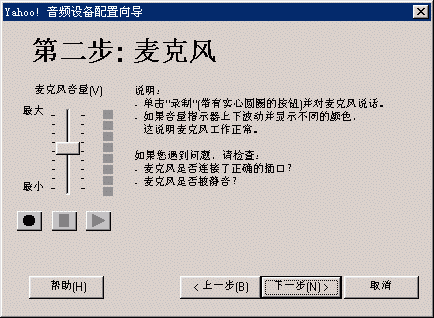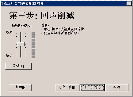選擇幫助->音頻設(shè)備配置向?qū)?圖2),會彈出“音頻設(shè)備配置向?qū)А贝翱?圖3),這個向?qū)䦷椭銓P聲器、麥克風(fēng)、回音、網(wǎng)絡(luò)連接等項目進行標(biāo)準的測試和設(shè)置。