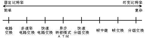 在通信網(wǎng)絡發(fā)展過程中,出現(xiàn)了多種信息傳輸方式,它們分別適應不同業(yè)務速率,如下圖所示。這里只對比電路傳送模式和分組傳送模式兩個極端情況,對其他模式,讀者可以自行參照下圖和相關(guān)資料。